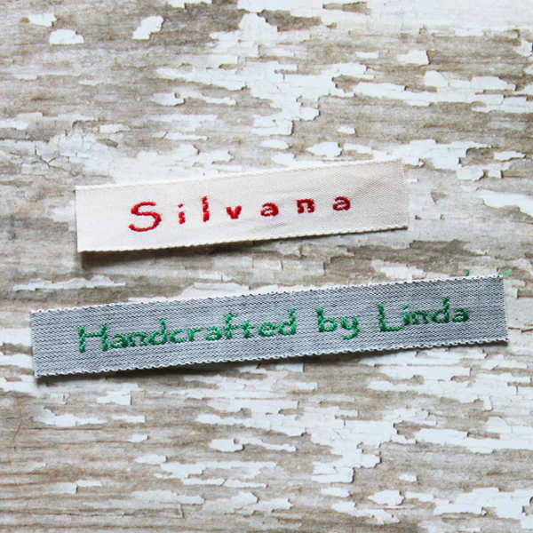Let the world know who made it with these gorgeous completely woven labels. Loomed from the finest 100% cotton threads makes these labels soft and luxurious. Select your text and label colors, add your own wording, even choose to add one of our many free design icons and create a woven label that is truly unique. Labels measure 3/8" (10 mm) in width (from top to bottom) and have no set length, as the length is determined by the amount of wording you choose. Type styles and are as shown, with no substitutions. Labels with Block lettering are available in both upper and lower case. Available in either iron on or sew in, the labels are machine washable, dry cleanable and will last the life of your products.